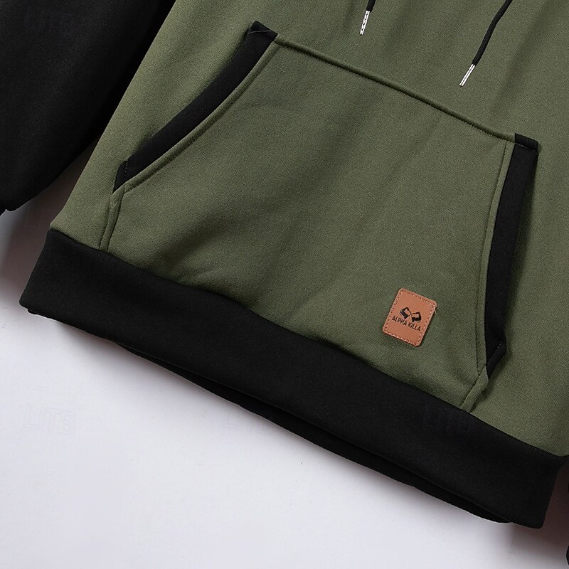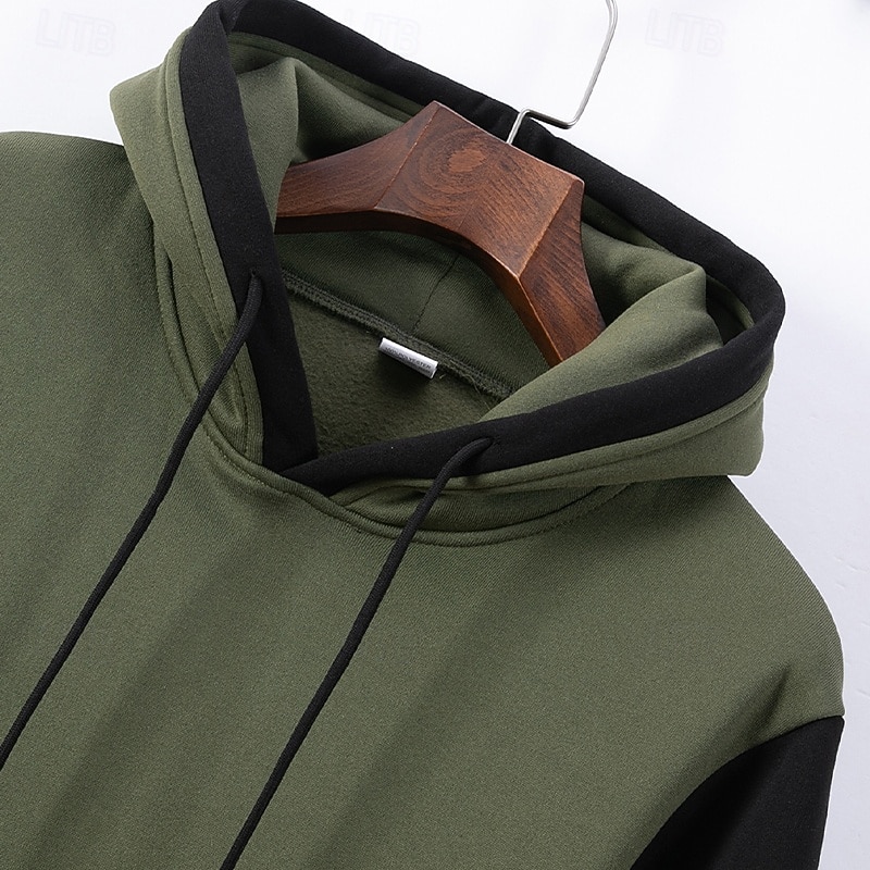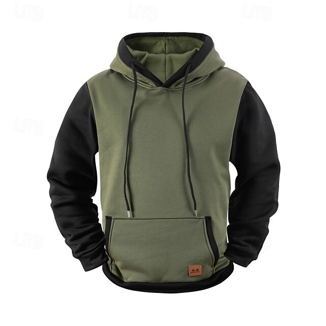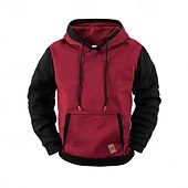 Men's Hoodie Pullover Hoodie Sweatshirt Fleece Hoodie Wine Red Army Green Navy Blue Gray Hooded Plain Patchwork Color Block Sports & Outdoor Casual Daily Streetwear Cool Sportswear Spring & Fall