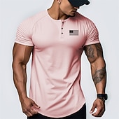 More information about Men's Graphic National Flag Henley Shirt Raglan T Shirt Short Sleeve Fashion Daily Casual Sports Outdoor Holiday Going out Spring & Summer White Pink Sky Blue Henley Henley T-Shirt