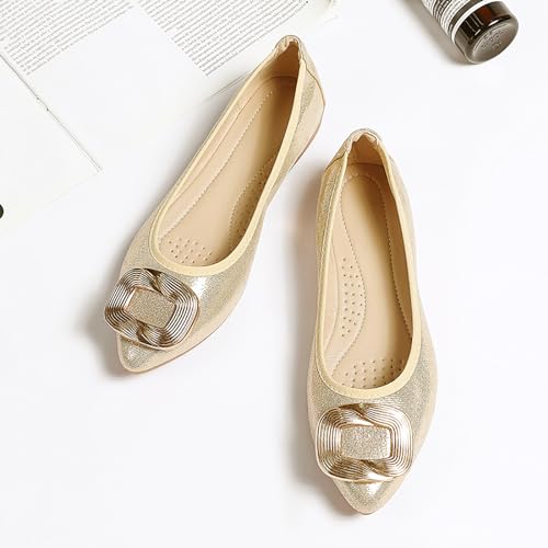 • 【Easy to Match】: The simple and cute appearance allows this pair of 0.78 inch low heel dress shoes driver flats to have a variety of matching options. It goes great with jeans, t-shirts, dresses, suits,and more. Classic matte pointed toe ballet flats can be integrated into different styles. Weddings, parties, work, cocktail parties, street and other occasions, these flat dress shoes black/gold/silver comfortable will add more compliment to your outfit.