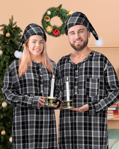 • Comfort and Material: the men's pajamas are crafted with button front collars and chest pockets, making them comfortable to wear; Our pajama sets are composed of soft flannel cotton plaid fabric; The long sleeve flannel pajamas are below the knee length, and the cotton flannel keeps you warm during the chilly winter months; The adjustable elastic band on the sleeping hat can be securely fastened to ensure a good fit