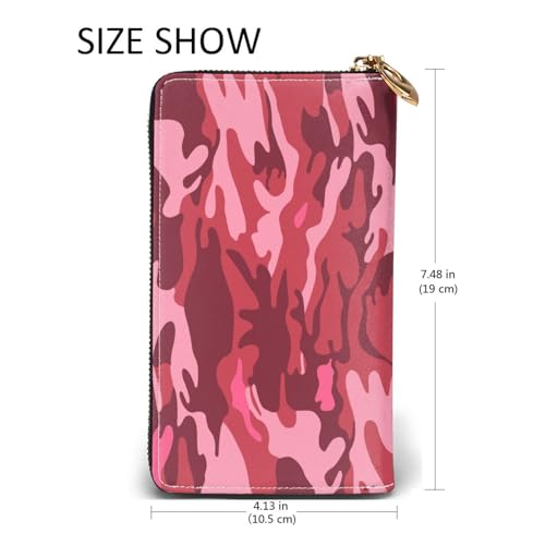 HOT ! Leather Wallet For Women And Men Dark Coral Pale Pink Camouflage Clutch Purse Wristlet Bag Credit Card Holder Wallet