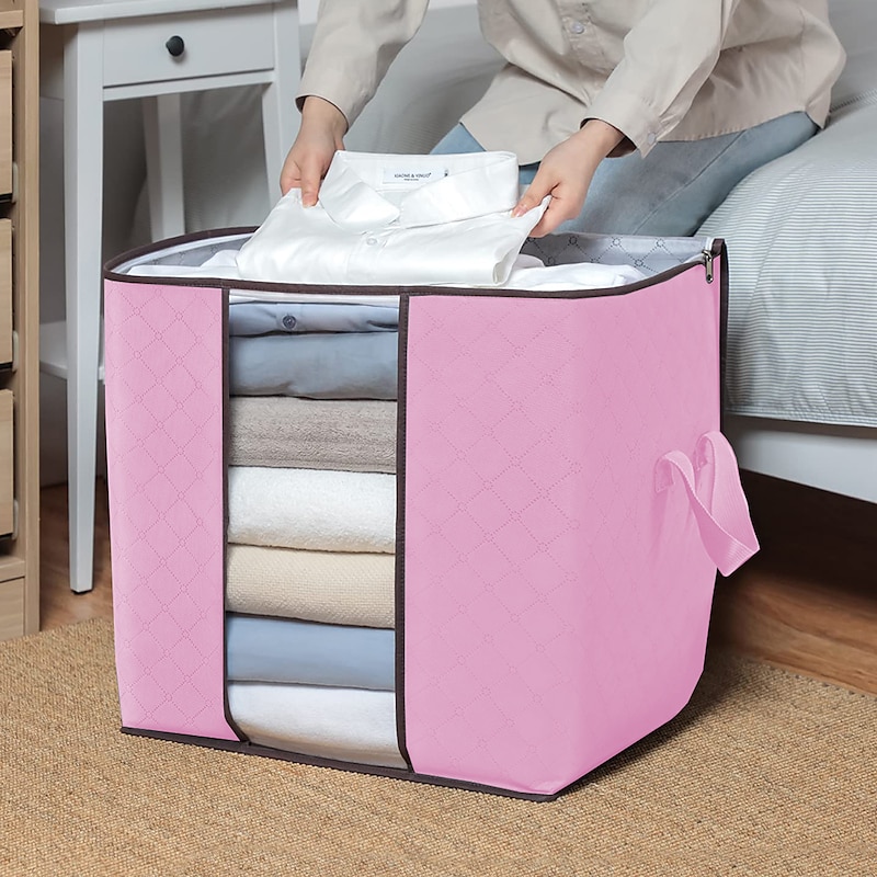 Highlights Spacious and Durable: 1pc Large Storage Bag Organizer is perfect for storing winter clothes, bedding, comforters, and clothing. Convenient Design: The clear window allows you to easily identify the contents of the bag, while the sturdy zippers ensure secure closure. Reinforced Handle: The reinforced handle makes it easy to carry the bag, even when it's fully loaded. Versatile and Practical: This storage container is versatile and practical, making it a great addition to your closet or storage space. Affordable and Lightweight: This storage bag is lightweight and affordable, making it a good buy for anyone looking for a quality storage solution. Outfit Ideas: Use it to store your winter clothes, bedding, comforters, and clothing, or take it with you on your next trip for easy packing.