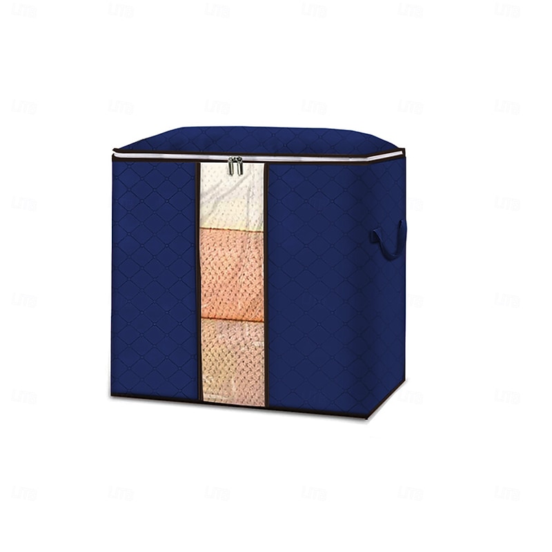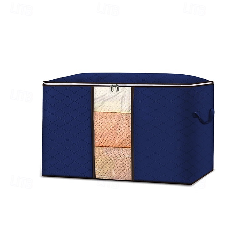 1pc Large Storage Bag Organizer Clothes Under-Bed Storage With Reinforced Handle, Storage Containers For Bedding, Comforters, Clothing, Closet, Clear Window, Sturdy Zippers 2