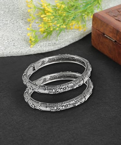 Indian Designer Fashion Handmade Traditional Ethnic Silver Oxidized Bollywood Kada Open Bracelet Bangles 2