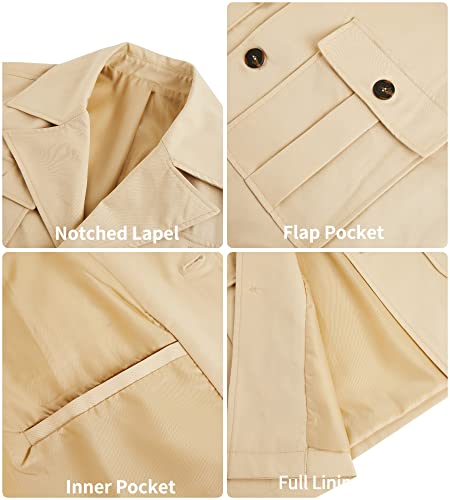 Pretifeel Mens Lightweight Safari Jacket Casual Military Button Up Multi-Pocket Cargo Coat Outwear 4