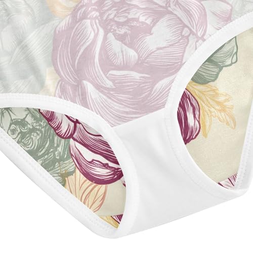 Toddler Girls Underwear 2t Cotton Little Girl Panties Funny Briefs Girls Undies Floral Peony Flowers Beige 4