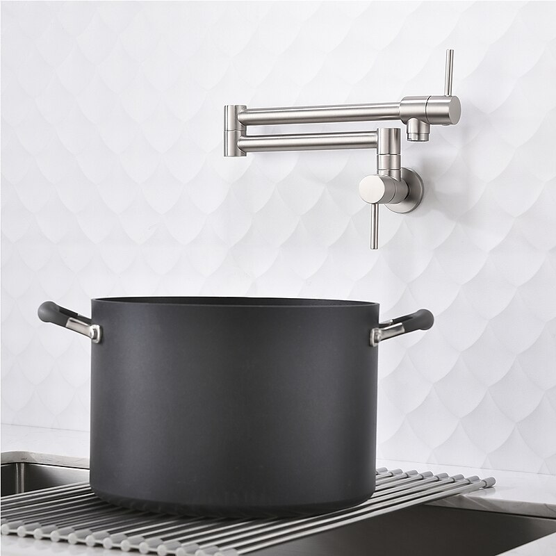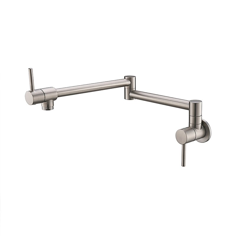 HOT ! Pot Filler Kitchen Faucet Brushed Nickel, Foldable Sink Only Cold Water Taps, Wall Mount Brass Folding Fill Pot Kitchen Tap Double Joint Swing Arm Single Hole 2 Handle