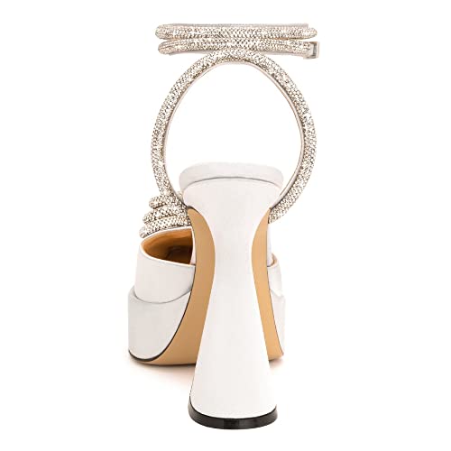 Vertundy Women's Platform Rhinestone Pumps - Ankle Strap Closed Pointed Toe Chunky Heel Satin Triple Heart Fashion Dress Shoes 4