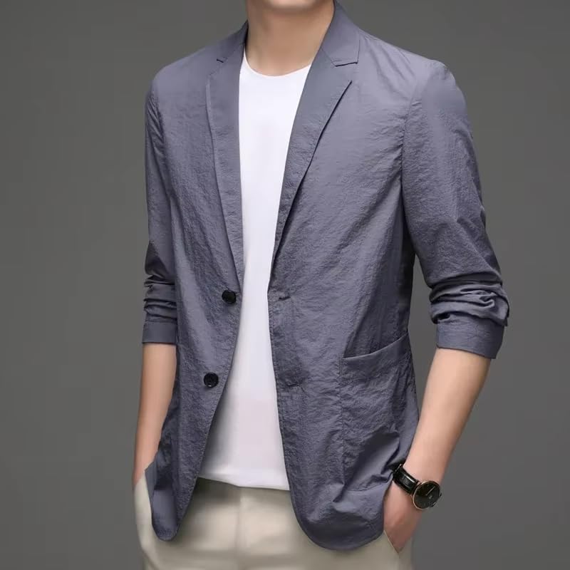 HOT ! Men's Casual Suit Set Spring Summer Lightweight Breathable Blazer for Men-Gray