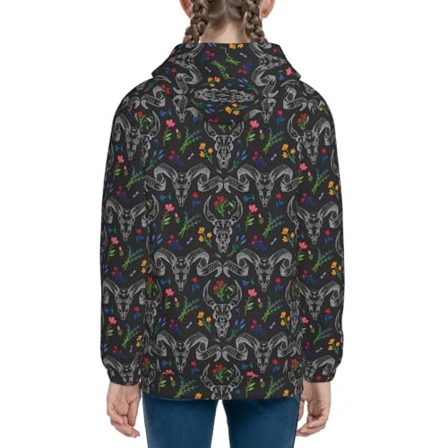 Skull with Horns the Flowers Kid Hoodies Boys Zip Up Sweatshirts Girls Pullover with Pocket 5