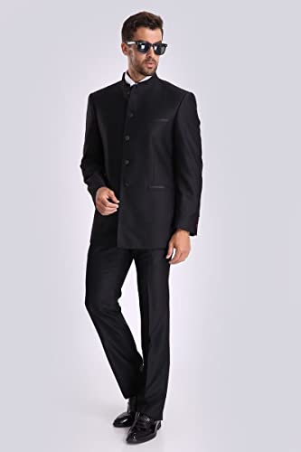 • 【Premium Material】Men's chinese tunic suit stand collar slim fit , it is made from high quality polyester material. Lightweight, breathable, comfortable and easy to wash. 5 button mandarin collar suit jacket men, stand collar, 2 real side pockets, 1 chest pocket, adjustable pants waist. This vintage style 1920s mens costume suit were popular in the early 20th century and now it's making a come back as casual event wear.