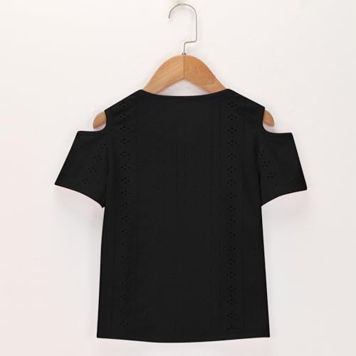 Girls Cold Shoulder Eyelet Blouses Short Sleeve T-Shirts Cotton Tees for Tween Girls Trendy T-Shirt Loose Casual Tops 6