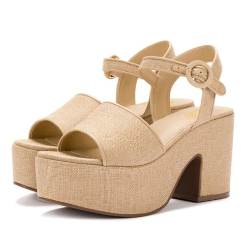 • - [Classic Characteristics] These women's thick heels sandals featuring a open toe, chunky platform sole, and strappy buckle design will add a sophisticated touch to your everyday look.