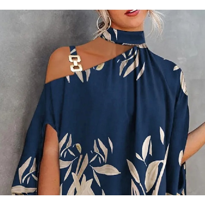 More information about Women's Shirt Going Out Tops Blouse Concert Tops Black Navy Blue Royal Blue Graphic Floral Patchwork Print Short Sleeve Daily Going out Streetwear Elegant Halter Regular Batwing Sleeve S