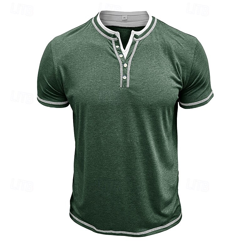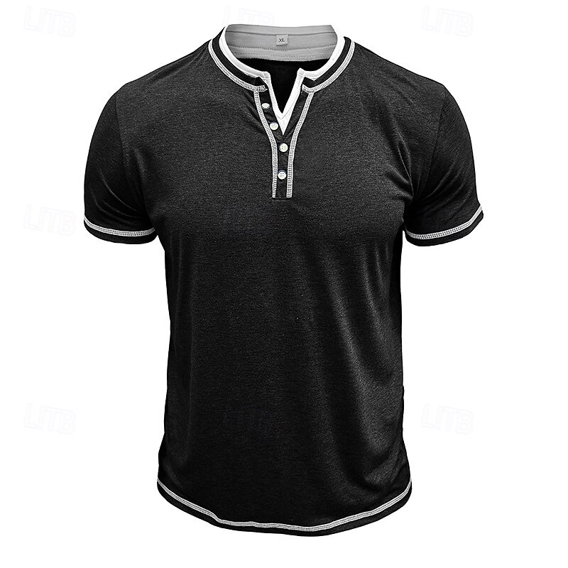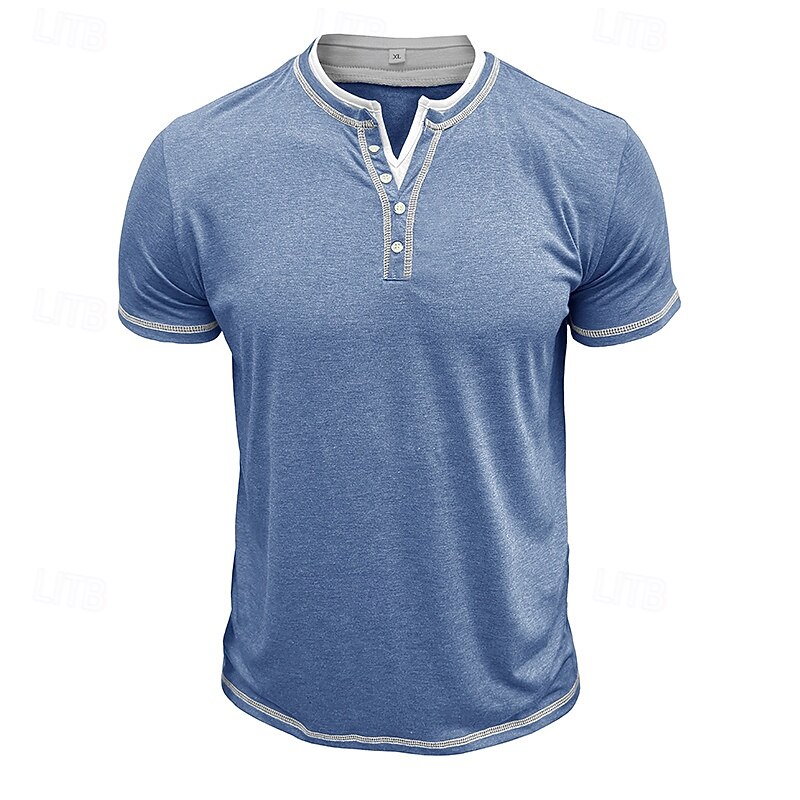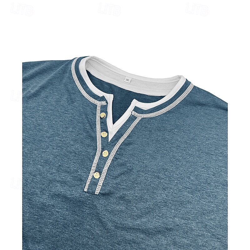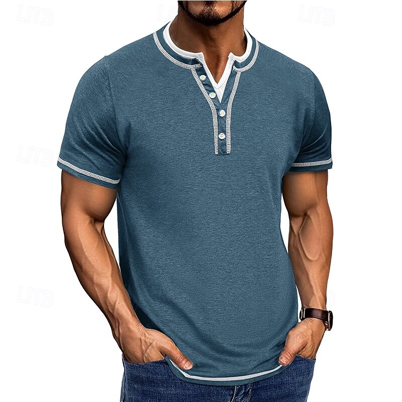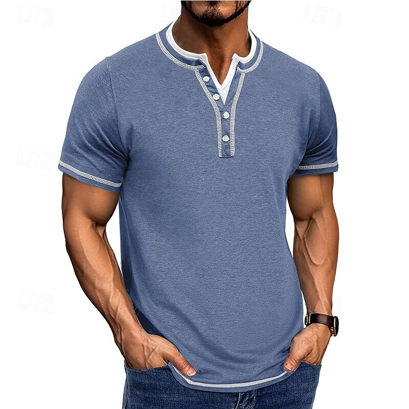 More information about Men's Henley Shirt Tee Short Sleeve Plain Vintage Buttons Fake two piece Henley Outdoor Casual Daily Summer Spring & Fall Dark Grey Black Light Blue Henley T-Shirt