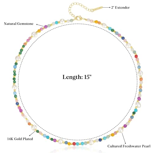 • Design: Designed with summer vibes, combine colorful natural stones and small pearls, 14k gold beads interspersed throughout the necklace elevate the overall fashion appeal, making it a trendy piece for any occasion