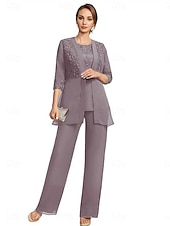 More information about 3 Piece Pantsuit Floral Sequin Lace Mother of the Bride Pantsuit Elegant Vintage Crew Neck Ankle Length Half Sleeve with Jacket