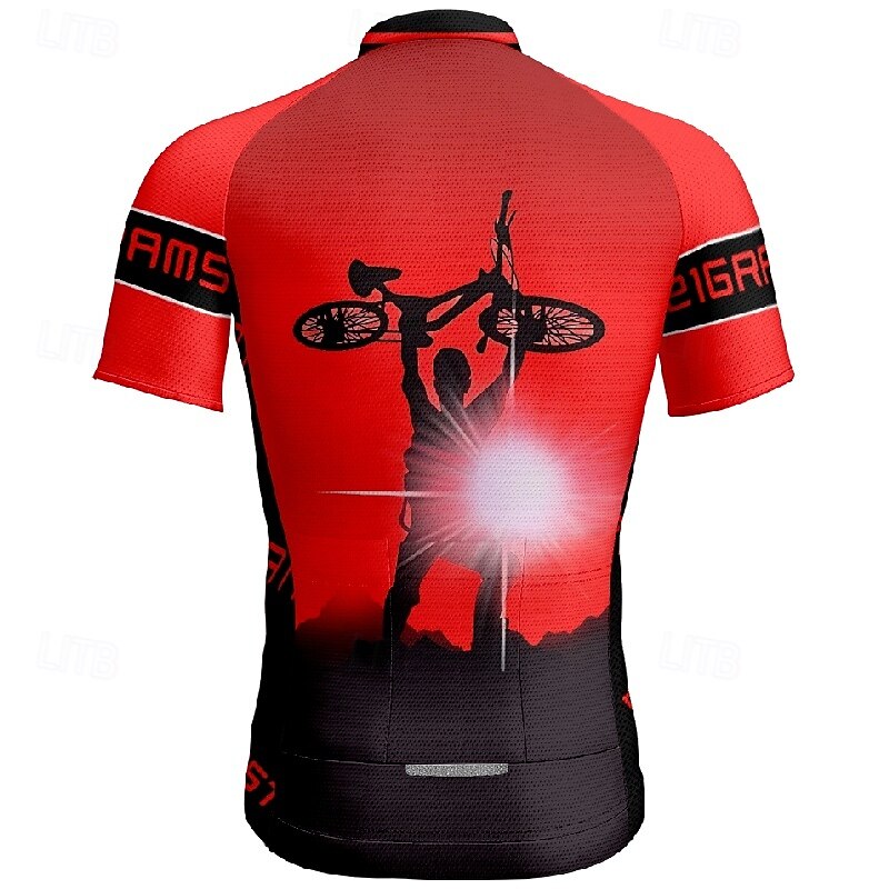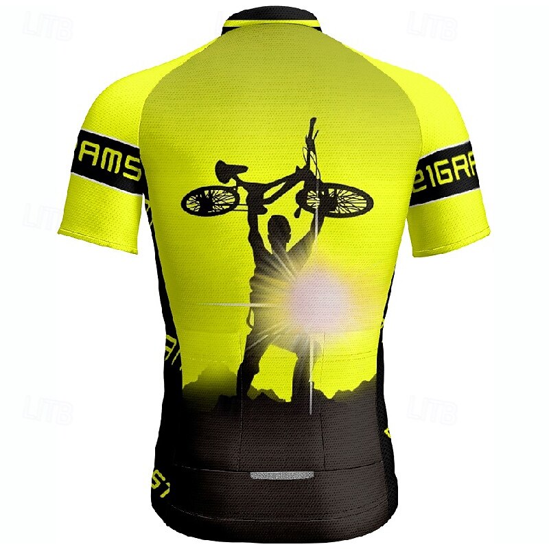 More information about Men's Cycling Jersey Letter & Number Short Sleeve Bike Tee Tshirt Jersey with 3 Rear Pockets Mountain Bike MTB Quick Dry Anatomic Design Wicking Breathable Sports Wine Red Yellow Red Clothing Apparel