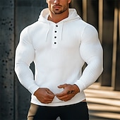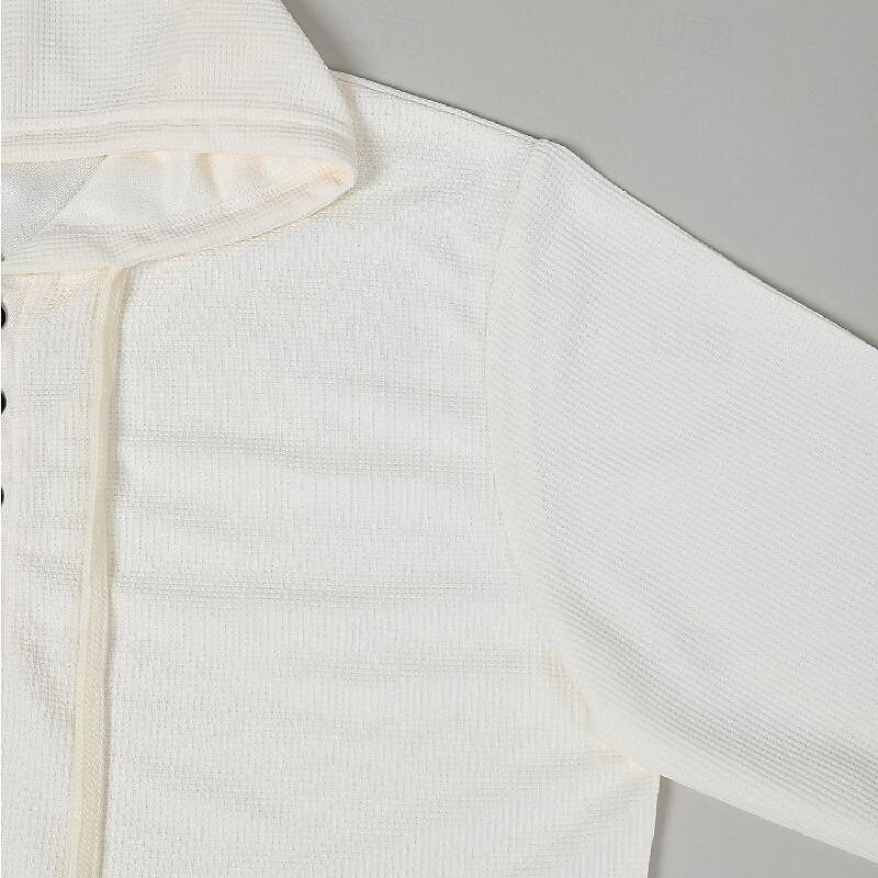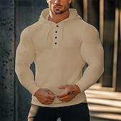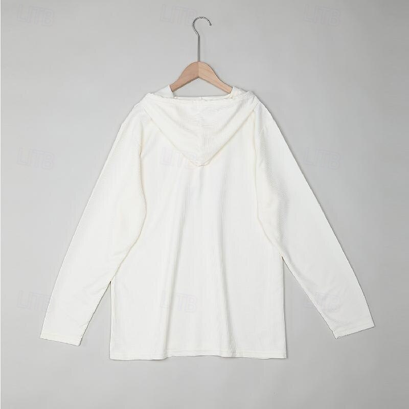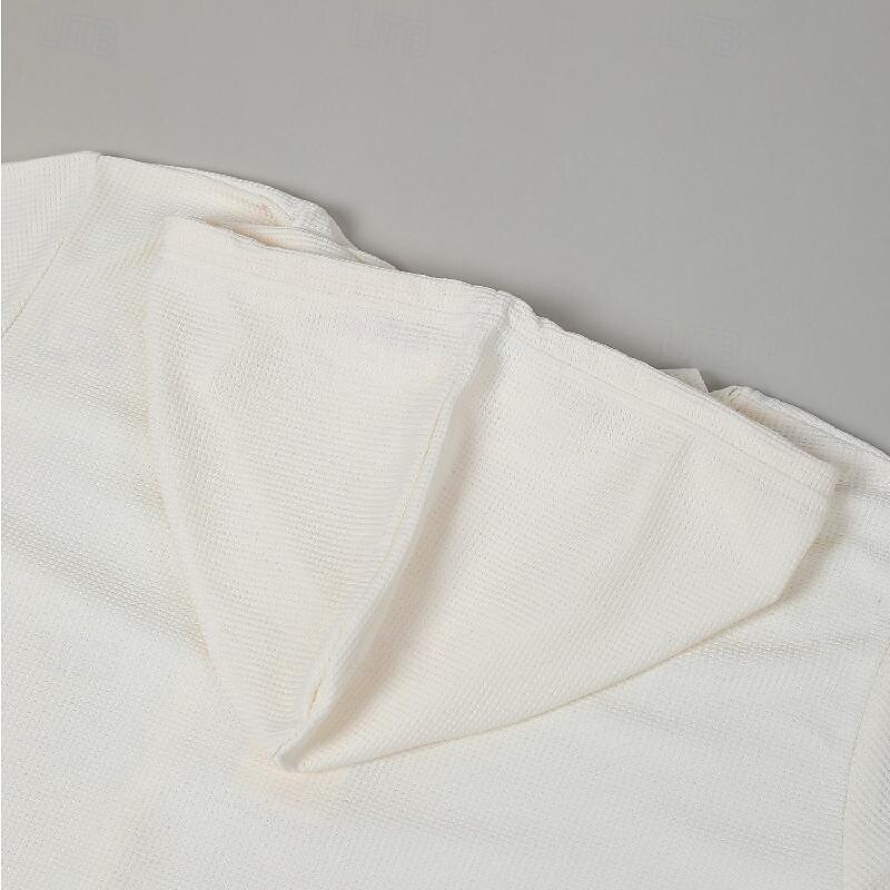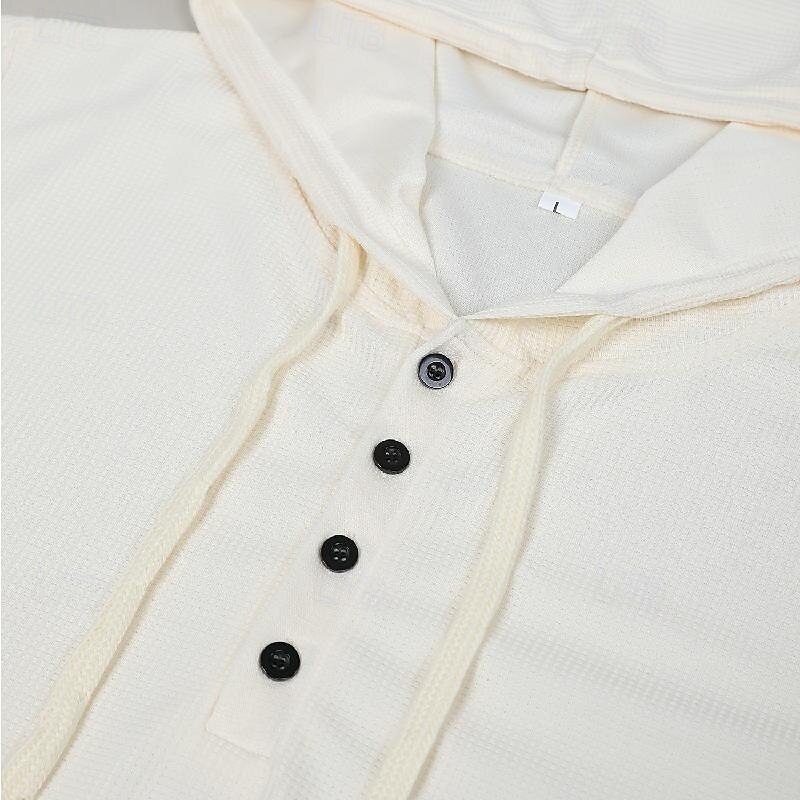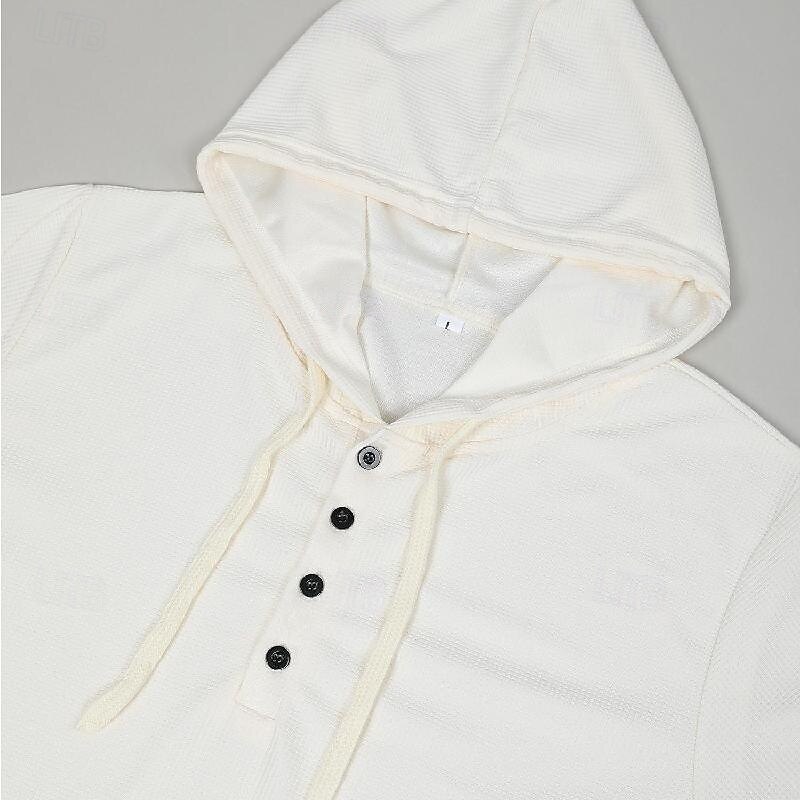More information about Men's Waffle Shirt T Shirt Tee Top Long Sleeve Shirt Long Sleeve Hooded Spring & Fall Plain Fashion Designer Buttons Vacation Street Going out White khaki Grey Top Tee for Men