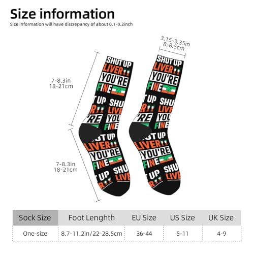 • Product Performance: This Shut Up Liver You're Fine Socks Made Of High Quality Polyester Fiber, Skin-Friendly And Comfortable, Moisture Wicking And Breathable, Not Easy To Pill. Good Elasticity, Complements Your Shoes And Clothes, Brings You An Overall Sense Of Fashion, And Can Be Reused For A Long Time.