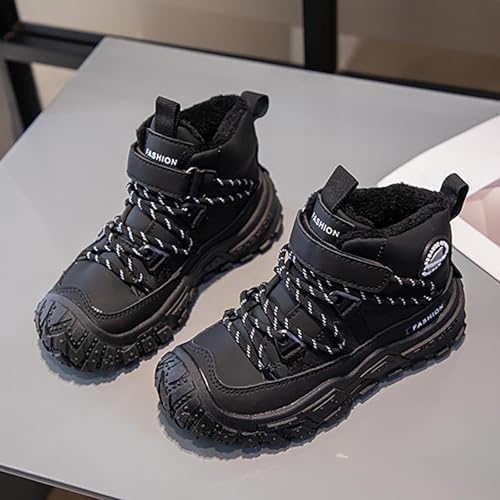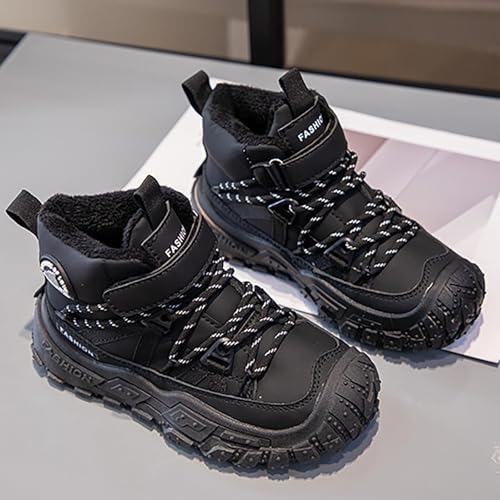 HOT ! Childrens Chunky Sole Slip On Booties with Lace-Up Kids Boys Fuzzy Fleece Lined Warm Short Boots Winter Outdoor Shoes