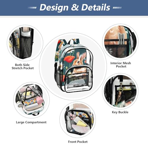 Clear Bag for Women Travel Kids Backpack Boys Girls Approved Shoulder Bag Brown Rabbit Colorful Wildflowers 7