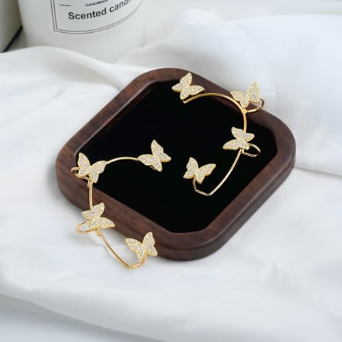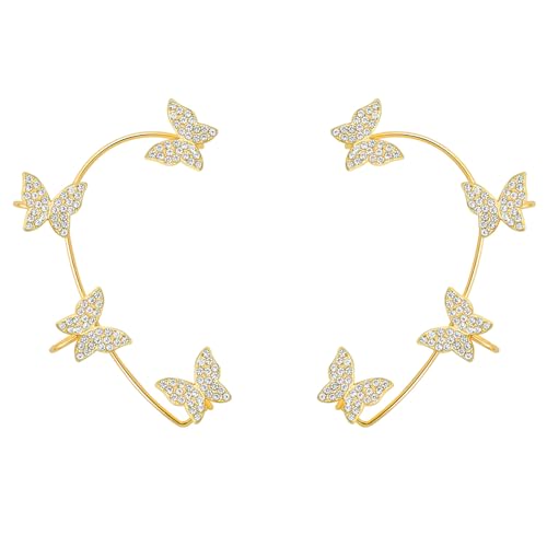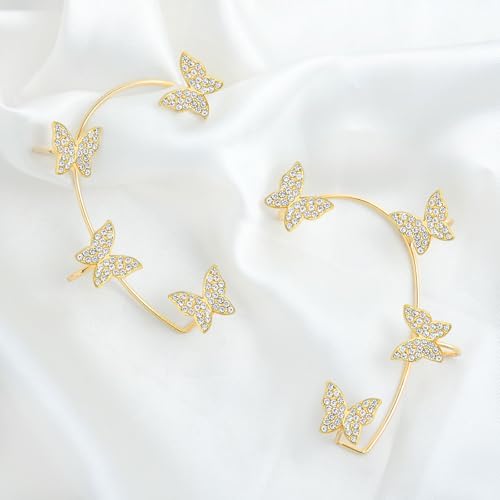 HOT ! Clip On Butterfly Ear Cuffs & Wraps for Women 2 Pairs, Rhinestone Non Piercing Ear Clips, Perfect for White Party, Wedding & Bridal Jewelry