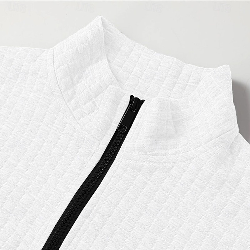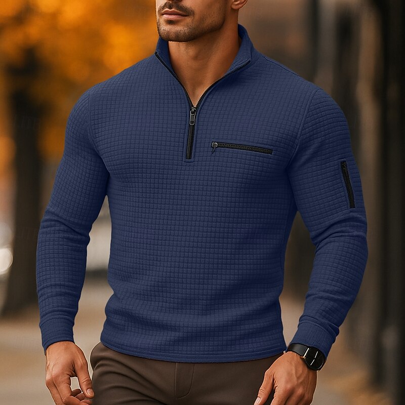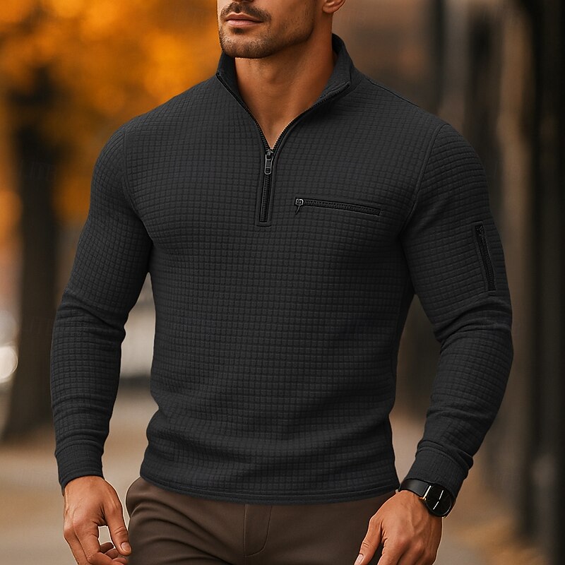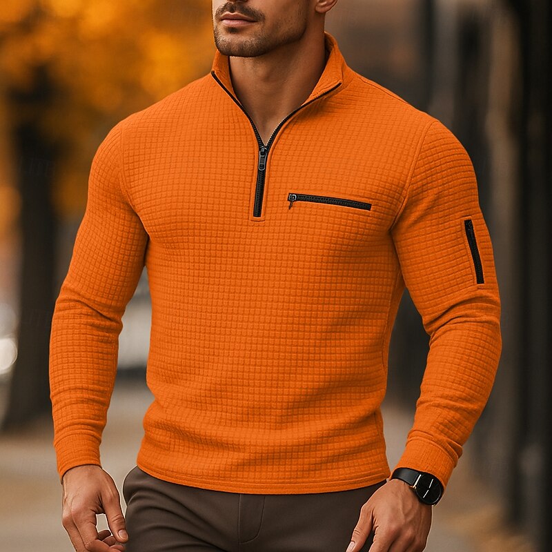 More information about Men's Waffle Polo Shirts Vacation Work Quarter Zip Long Sleeve Fashion Comfortable Color Block Zip Up Pocket Spring & Fall Regular Fit Black White Navy Blue Orange Waffle Polo Shirts