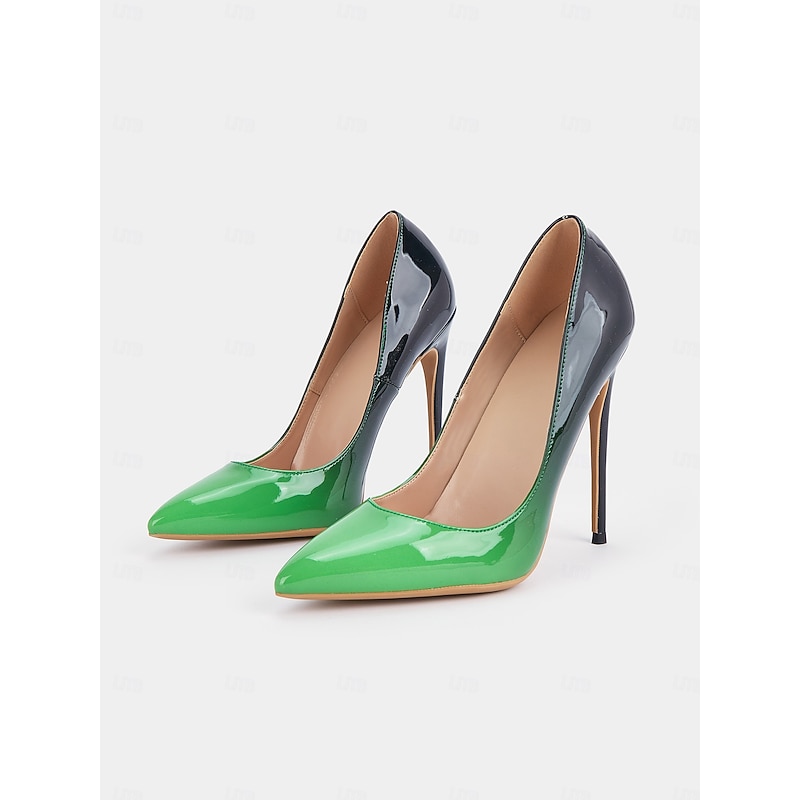 HOT ! Women's Green & Black Patent Leather Pointed Toe Pumps – Chic High Heels for Formal & Party Wear
