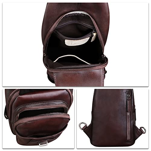 Genuine Leather Sling Bag for Women and Man Handmade Retro Hiking Crossbody Backpack Purse Chest Shoulder Daypack 4