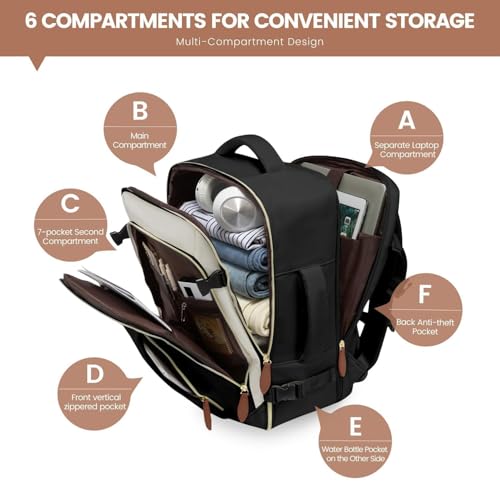 • EXPANSIVE 40L CAPACITY FOR ORGANIZED TRAVEL - Journey with everything you travel essentials for 3-5 days, neatly organized in this versatile carry on backpack. Its luggage-style main compartment, separate laptop section, and multi-pocket zipper front pocket offer unmatched convenience