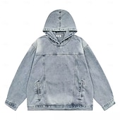 More information about Men's Pullover Hoodie Sweatshirt Distressed Hoodie Black Blue Hooded Plain Pocket Casual Daily Going out Polyester Streetwear Casual Fall & Winter Clothing Apparel Hoodies Sweatshirts
