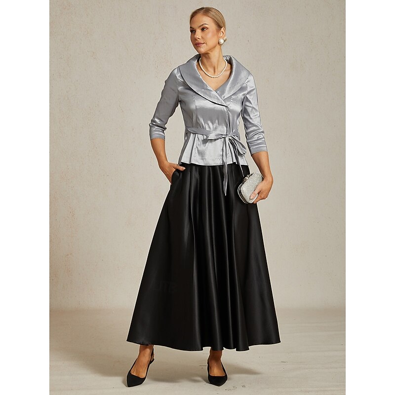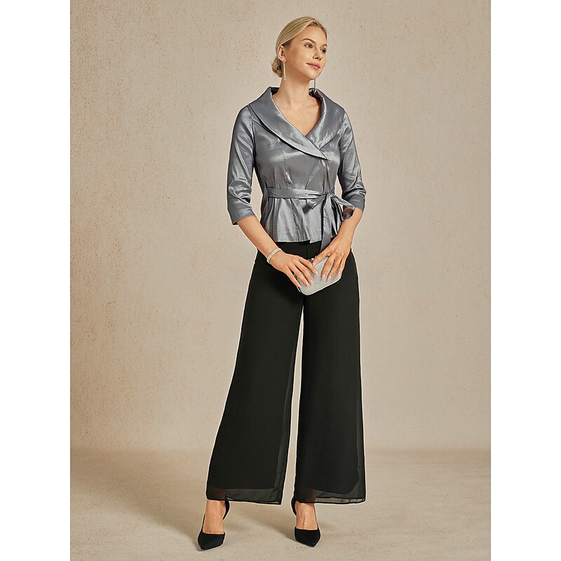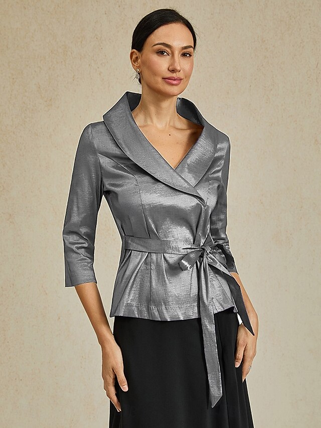 More information about Women's Blouse Evening Tops Elegant Metallic Stylish 3/4 Length Sleeve V Neck Regular Tops Wedding Guest Evening Party Semi Formal Tie Front Gray Spring, Fall, Winter, Summer