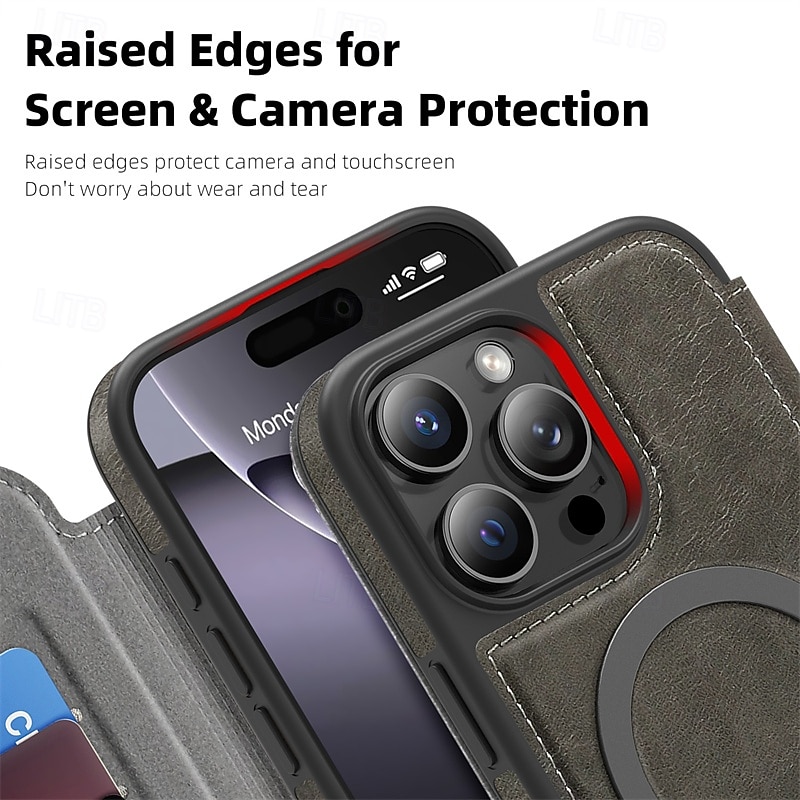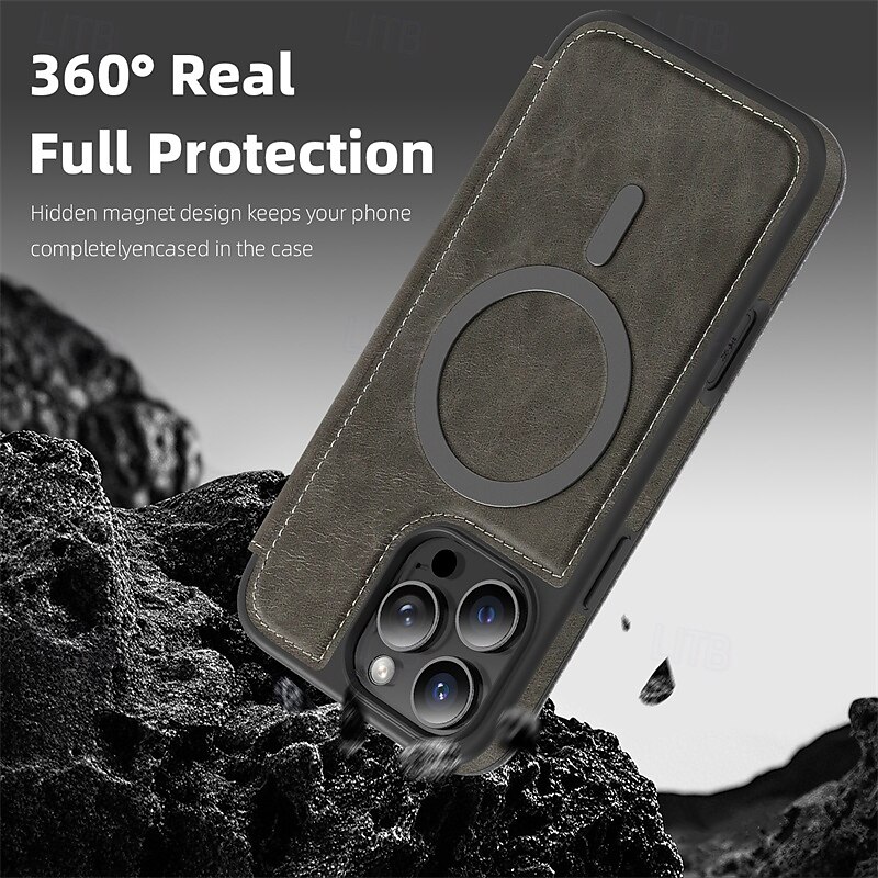 More information about Phone Case For iPhone 17 Pro Max 17 Air 16 15 14 Pro Max Plus 16e 13 12 Pro Max Magnetic Adsorption Flip Cover Support Wireless Charging Card Slot Shockproof TPU PC PU Leather