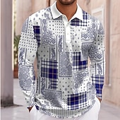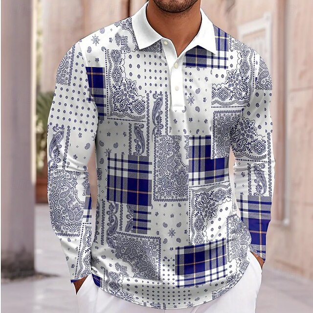 More information about Men's Color Block Polo Long Sleeve Polo Shirts Lapel Vintage Casual Outdoor Athleisure Daily Wear 3D Print Buttons Spring Fall Winter Blue