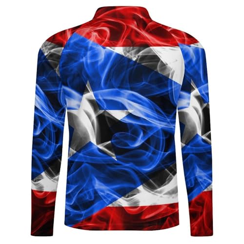 Puerto Rico Smoke Flag Men's Rash Guard Long Sleeves Quick Dry Fishing Workout Shirts with Zipper 6
