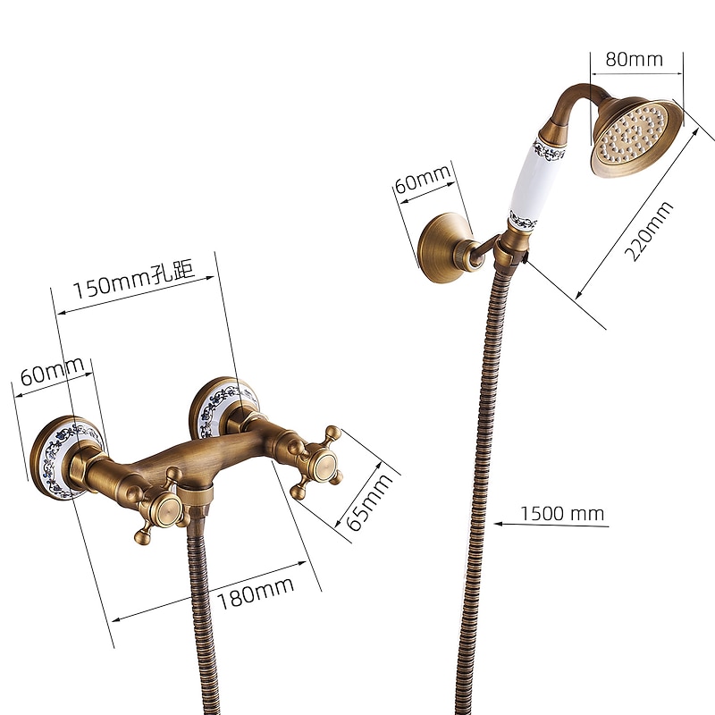 More information about Shower Faucet Set - Handshower Included pullout Vintage Style / Country Antique Brass Mount Outside Ceramic Valve Bath Shower Mixer Taps / Two Handles One Hole