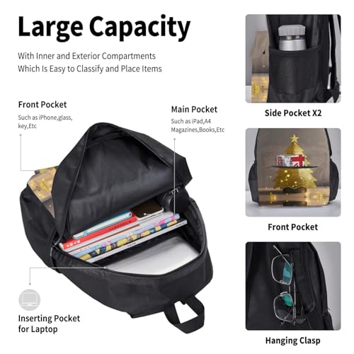 HOT ! nanger Golden Glitter Christmas Tree Print 3-Piece Set Backpack, Lunch Bag And Pencil Case, For Travel, College, And Daily Use
