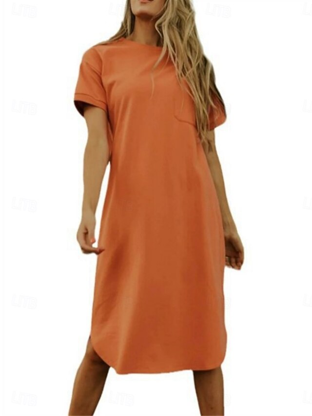HOT ! Women's Midi Dress Casual Dress Summer Dress Fashion Modern Daily Weekend Regular Fit Plain Short Sleeve Crew Neck Black White Red Dark Green Summer