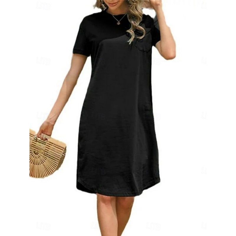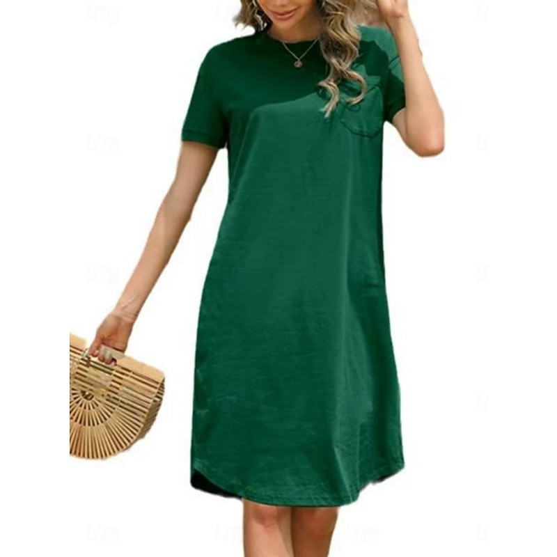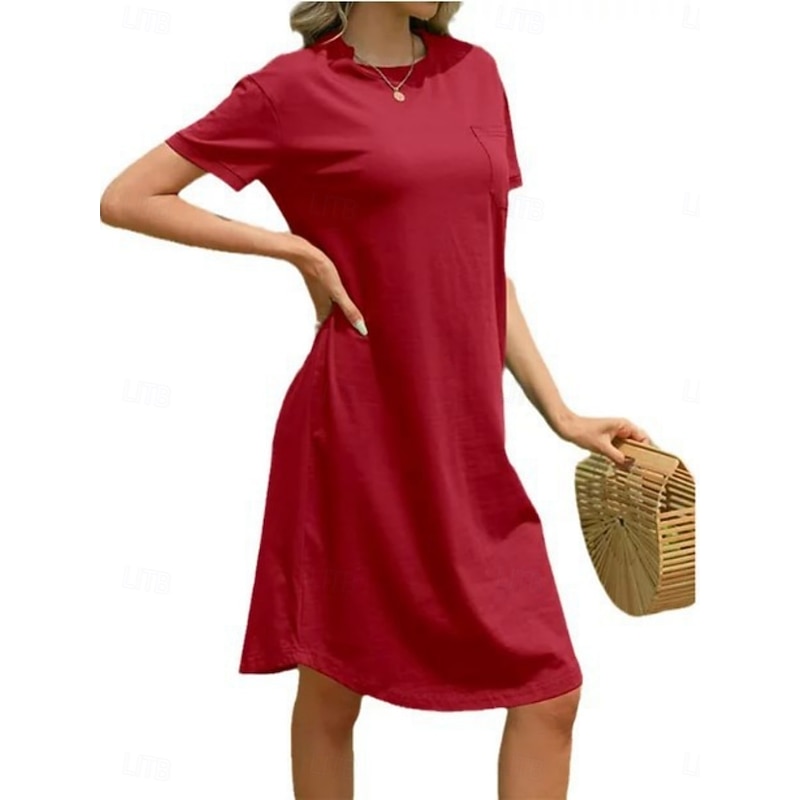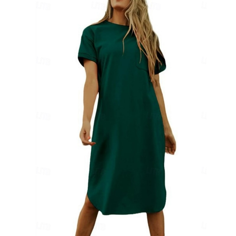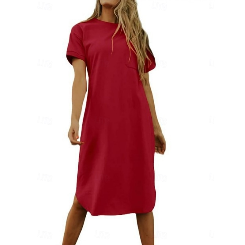 More information about Women's Midi Dress Casual Dress Summer Dress Fashion Modern Daily Weekend Regular Fit Plain Short Sleeve Crew Neck Black White Red Dark Green Summer