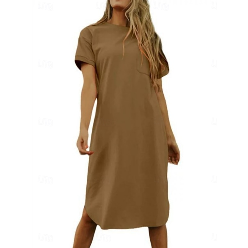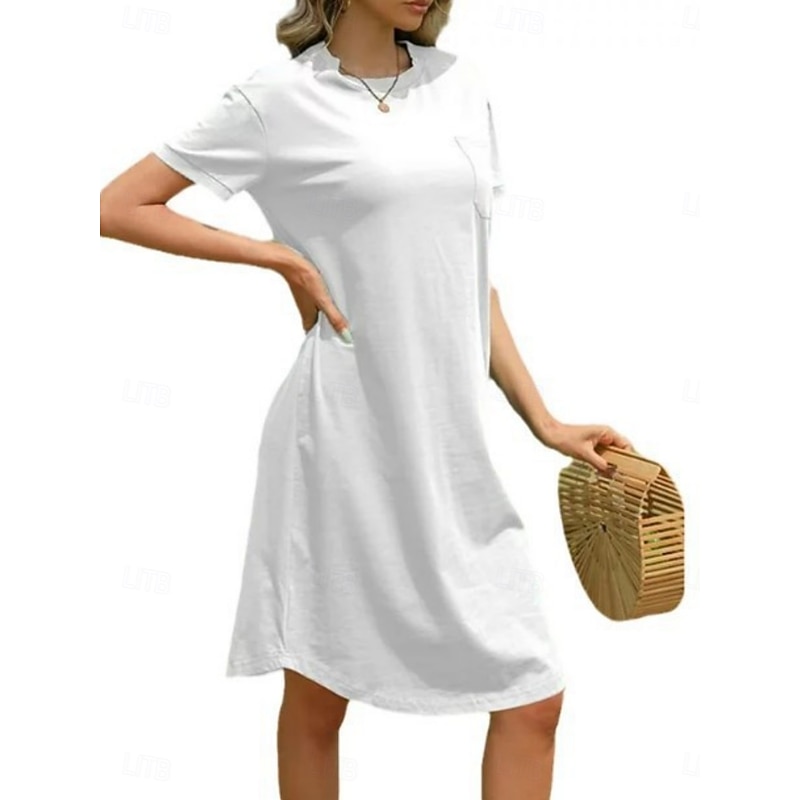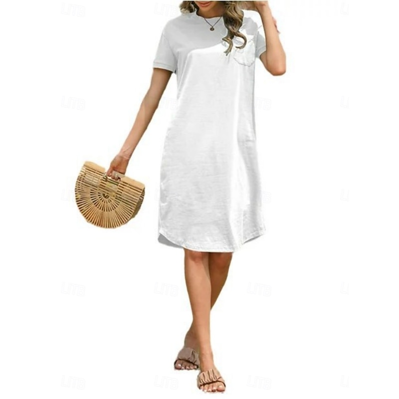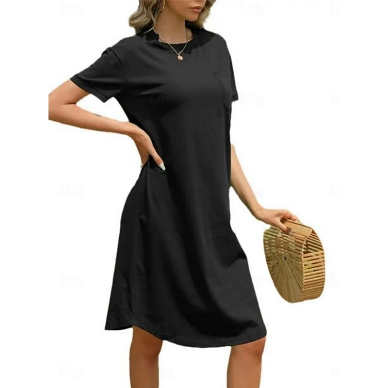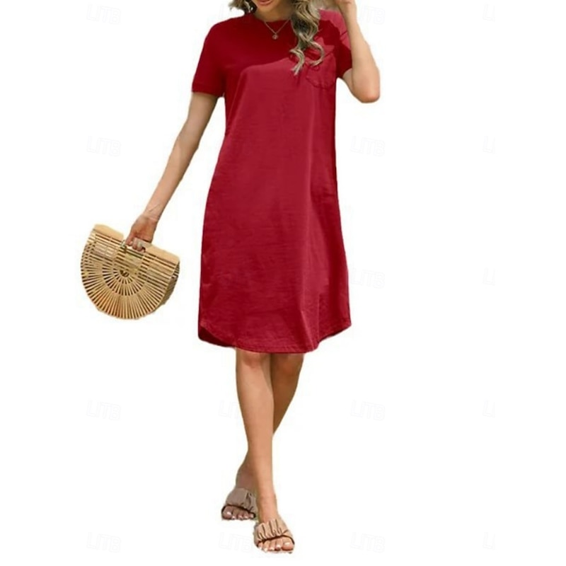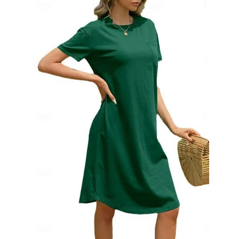 More information about Women's Midi Dress Casual Dress Summer Dress Fashion Modern Daily Weekend Regular Fit Plain Short Sleeve Crew Neck Black White Red Dark Green Summer