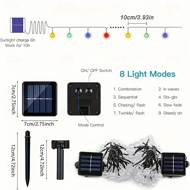 20M Solar LED Lantern String Lights, 200 Bubble Ball LEDs String, Waterproof Outdoor for Christmas Garden Decoration 1 Set 10