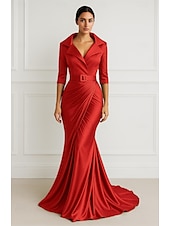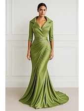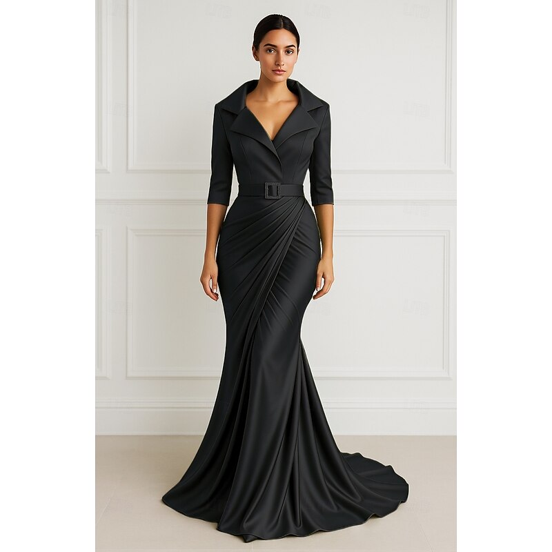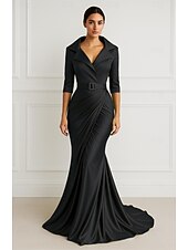 $159.99 - Black Tie Mermaid / Trumpet Evening Gown Elegant Dress Formal Wedding Floor Length Half Sleeve Lapel Belt / Sash Stretch Satin with Pleats 2025. Shop for cheap Mermaid Evening Dresses online? Buy at lightinthebox.com on sale today!