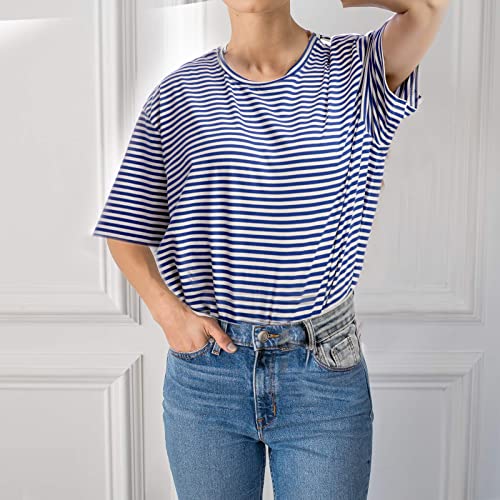 Blamoche Shoulder Surgery Shirts, Unisex Rehab Shirt with Discreet Shoulder Snaps, Chemo Clothing, Stripe Short Sleeve Shirt 4