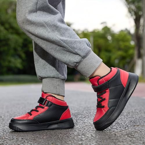Black Sneakers Boys High Top Lightweight Breathable Strap Athletic Sports Shoes Girls Walking Jogging School Running Shoes Size 4 5