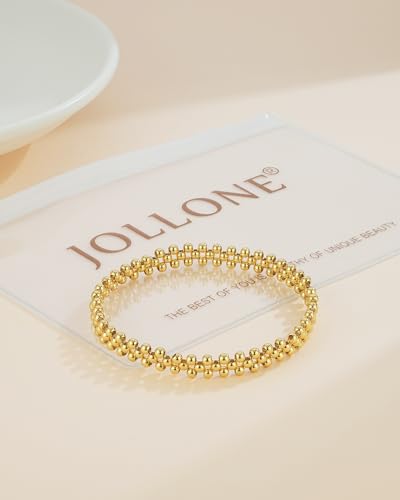 • JOLLONE Service: Please search for JOLLONE on Amazon, double surprise for you. This gold beaded bracelets for woment is perfect for any occasion, whether you're heading to a beach music festival, shopping, practicing yoga, working out, or enjoying afternoon tea—it will keep you looking elegant and charming at all times.Warning: CHOKING HAZARD-Small Parts. Not for USERS under 3 years old.