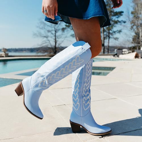 Yolkomo Cowboy Boots for Women Knee High Cowgirl Boots with Hearts 7