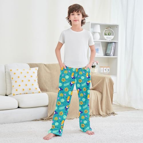 Parrot Tropic Leaves Boys Long Pants gentle Trousers Elastic Waist Kids Lounge Bottoms with Pockets S-XL