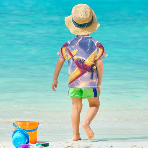 Boys Swing Shirts Fighter Airplane Lightning Rashguard Short Sleeve Kids T-Shirts Sun UPF 50+ 4