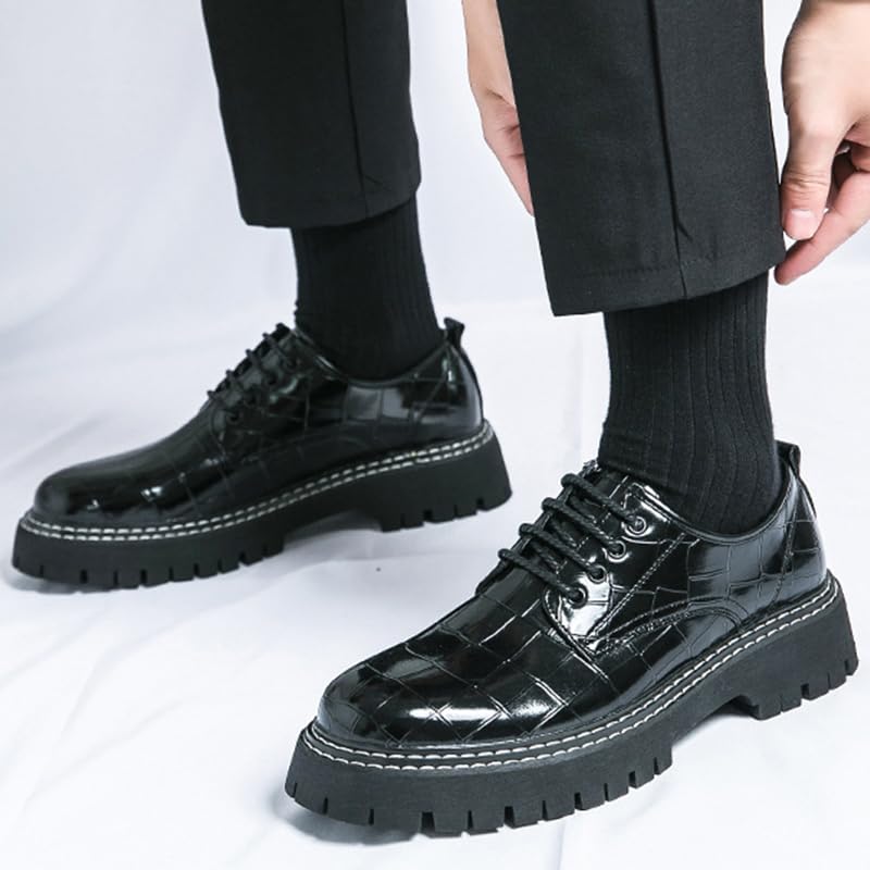 Men's Patent Leather Platform Loafers Luxury Alligator Printed Round Toe Lug Sole Lace-up Dress Shoes for Business Party Wedding Prom 6